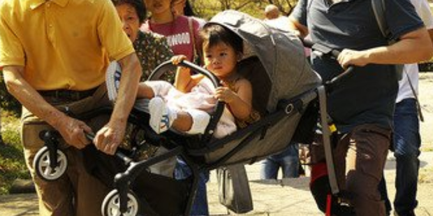 下面给目适合亲子活动的方法:一名家长推坐着宝宝的宝宝车向前进,绕过障碍后返回起点