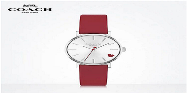 1:Coach的perr的款,而这款带有桃心设计的表盘,非常俏皮,而且秒针也是一颗桃心,小牛皮的表带,整体很喜气有爱。