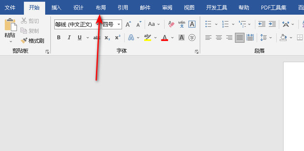 1:打开word文档后选择上方菜单栏内的布局。