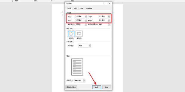 3:将上下左右的页边距都设置为2.5厘米,然后点击确定即可。