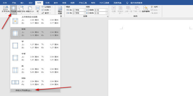 2:选择页边距下的自定义页边距。