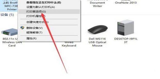 3:接着,右键设置联想的打印机,在弹出菜单中点击打印首选项