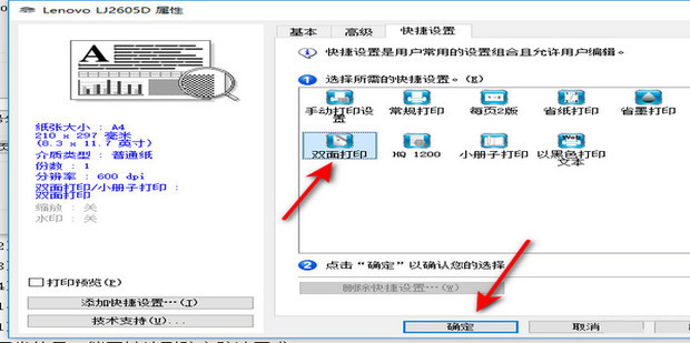 5:点击快捷设置中的双面打印,点击确认即可