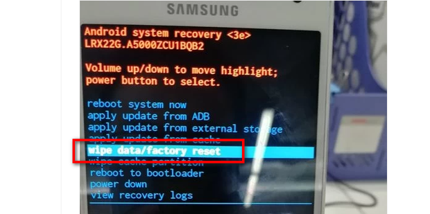 2:然后按音量下键选择到wipe data/factory reset,然后按电源键确认。
