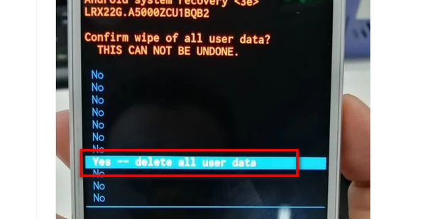 3:按电源键后,会进入选择完留议我庆界面,继续按音量下键选择YES,-delete all user data。
