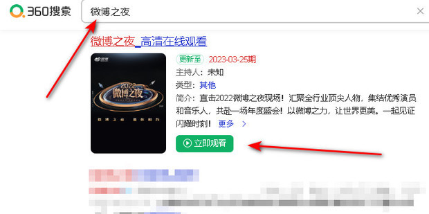 1:360搜索微博之夜并点击立即观看即可进入观看。