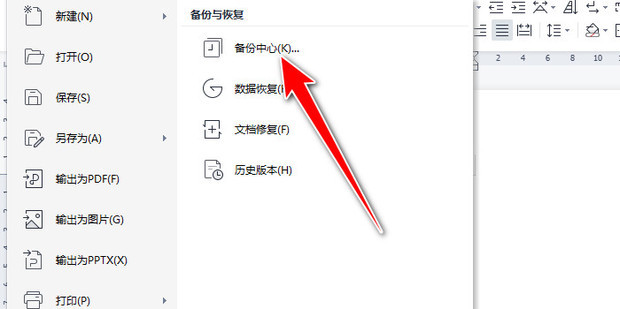 3:点击备份中心。