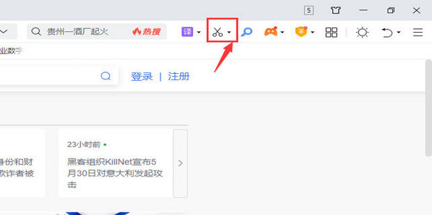 1:打开360概促吸或安全浏览器,在工具栏右信红领非她农发范上方找到剪刀截图工具