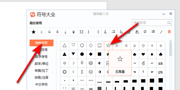 8:最后在特殊符号中点击五角星即可。