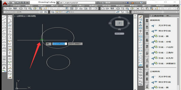 6:然后用鼠标点击另一个圆要画切点的大体位置,即可画出两圆的切线