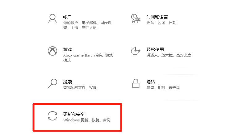 在电脑设置界面中,点击更新和安全。