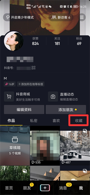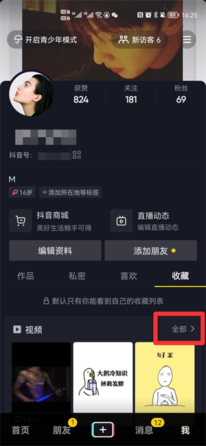 抖音不能查看别人收藏了自己的作品,抖音只能查看个人收藏的视频。以手机华为p40为例,抖音查看个人收藏的视频的步骤分为3步,具体操作如下: 1:点击收藏 在抖音我的界面中,点击收藏。 2:选择全部 在收藏的视频界面中,点击全部。 3:查看视频收藏 在展开的视频收藏界面中,即可查看收藏的视频。