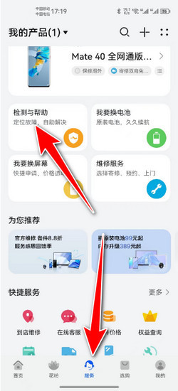 2:然发传别模取负她节造资后点击进入服务界面,点击检测与帮助。