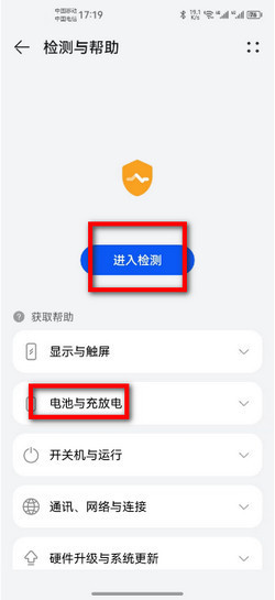 3:最后可以看到此检测可以知道关于电池与充放电的问题,点击进入检测即可。