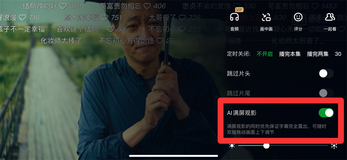 在展开的选项中,将AI满屏观影开启即可。