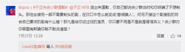 这一次,让吃瓜网友再一次领教了于正的丑态,也看到了少群小哥哥的耿直。