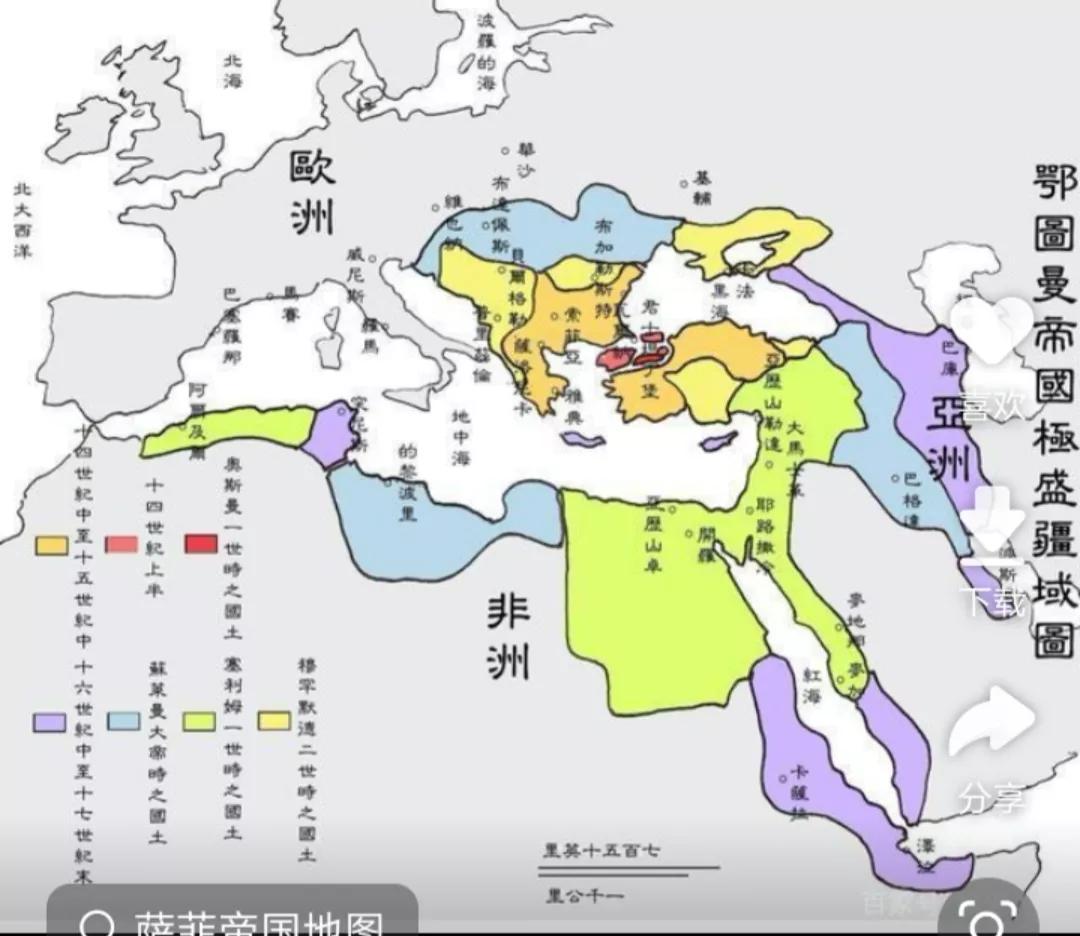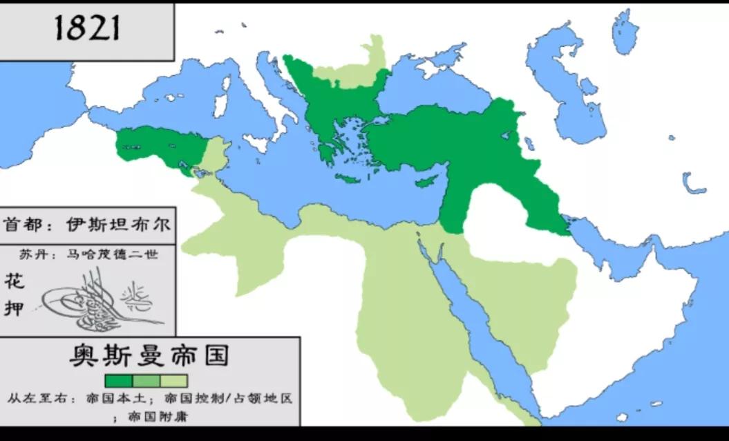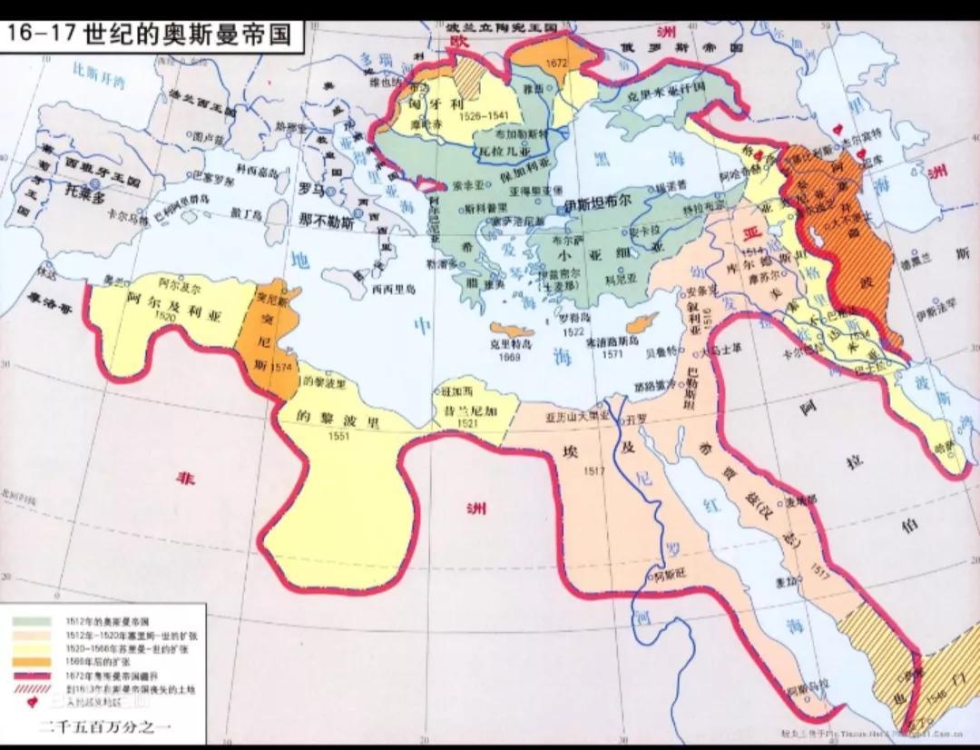奥斯曼帝国最大版图面积为550万平方公里,奥斯曼帝国曾经在16到18世纪唯一能够挑战欧洲伊斯兰教国家。