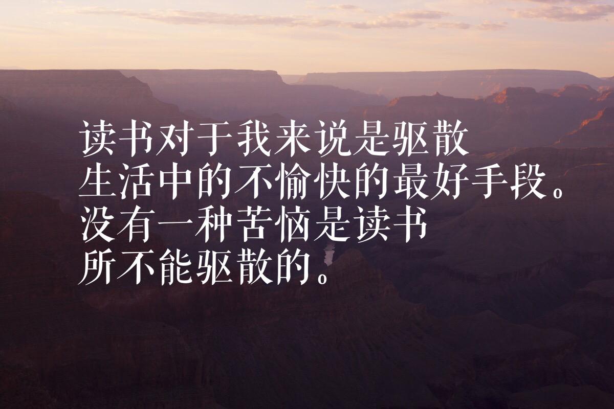 读书对于我来说是驱散生活中的不愉快的最好手段。没有一种苦恼是读书所不能驱散的。