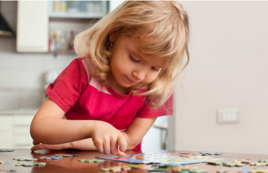 1:给出具体观察技巧,先观察四周的颜色、图形,然后找一些靠边的形状拼过来,最后拼中间的,相邻的图形颜色、形状都要接得上。