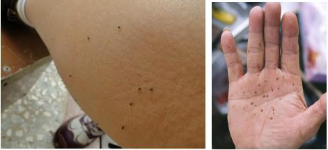 大家从图片上看到的这些小家伙,是不是比蚊子小很多,是不是很难发现?一巴掌拍下去“血淋淋”的。全世界已知吸血蠓达到1500多种,我国就有400余种,在国内分布广泛,特别在我国南方地区、西部等地区,吸血蠓对人的叮咬危害较大。