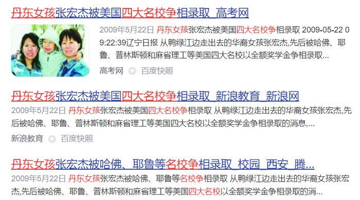 “辽宁丹东女孩张宏杰被美国四大藤校争相录取”