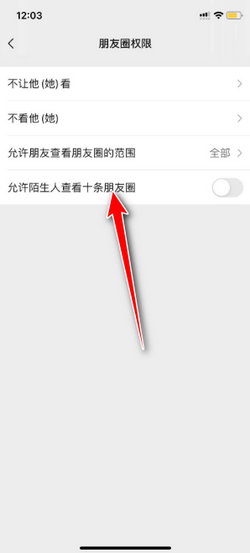 4:最后关闭允许陌生人查看十条朋友圈即可。