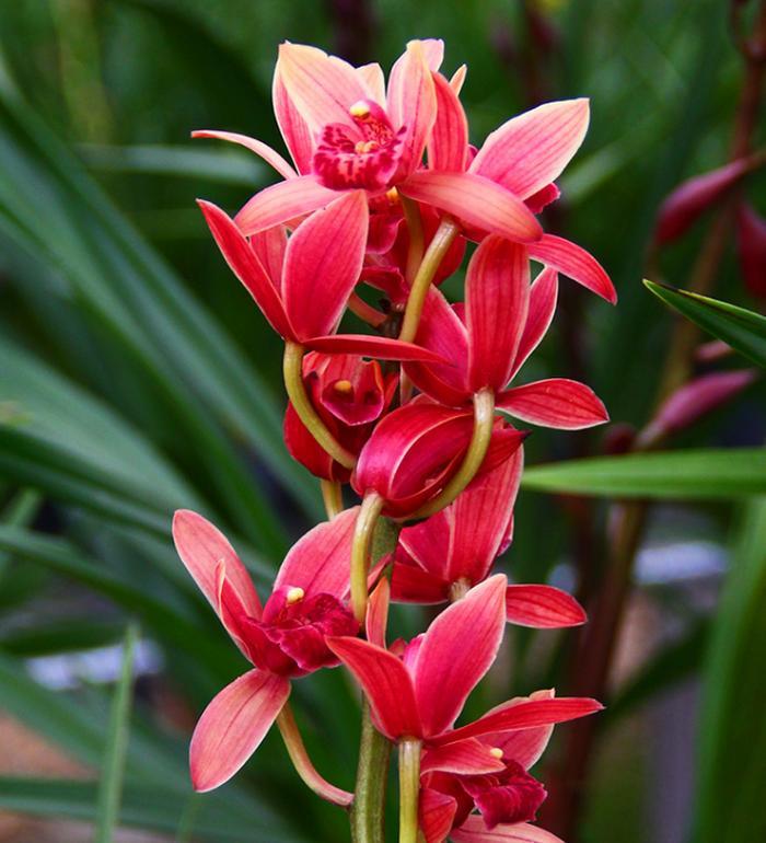 它就是我们今天的主角——建兰红凤冠,它的花色一点不比国魂差,花苞硕大,花大色艳说的就是它,红凤冠的花香非常浓郁,养一盆放在居室,很远都能闻到香味,赏花又闻香一举两得。