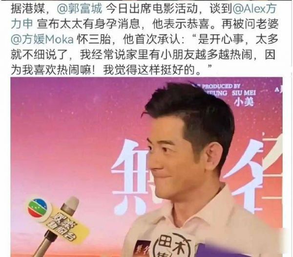 在父亲节的一次采访中,郭富城毫不犹豫地透露了一个令人惊喜的消息——他又要当爸爸啦!而他的妻子方媛已经怀孕六个月了。这对夫妇之间足足相差22岁,结婚至今已八年,已经迎来了两个可爱的女儿。这次怀上第三个宝宝,真是让网友们的讨论热闹非凡,各种声音层出不穷。有人不禁感叹,看看郭富城那一脸的幸福,看来他心底里一直在期待着一个儿子的诞生呢。毕竟,这对夫妻这几年的生活可谓波折不断。