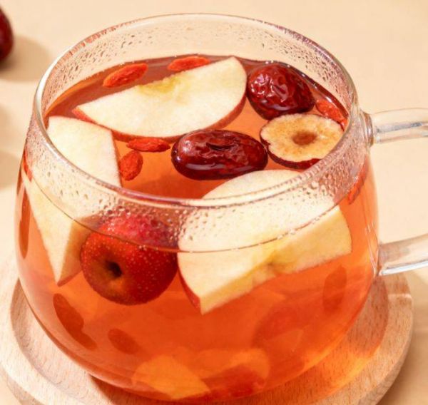 苹果和红枣能补中益气、健脾养血,焦山楂助消化、化瘀滞,搭配起来可缓解虚寒夹积的体质。