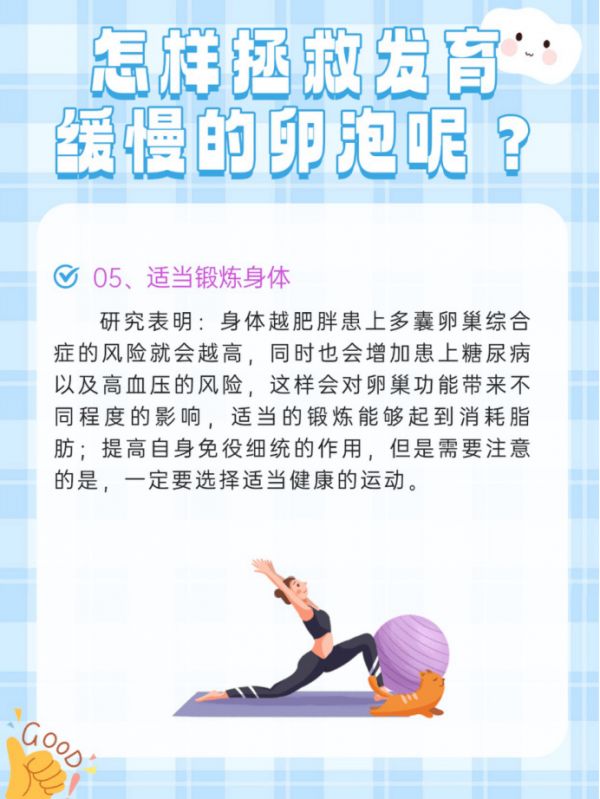 别把 “躺平” 当 “养卵”:卵巢喜欢 “规律的节奏”,不是天天卧床。每天 30 分钟温和运动(比如瑜伽猫式、快走),能促进盆腔血液循环,比躺着刷手机更能给卵泡 “供氧”;