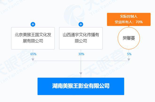 在张纪中任总经理的湖南美猴王影业公司中,樊馨蔓担任法定代表人及董事长职务,并间接持有约 70% 股权。