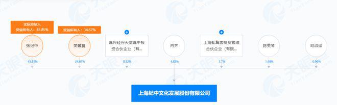 其中,上海纪中文化发展公司由张纪中持有 45.85% 股权,樊馨蔓担任该公司法定代表人、董事长等职务并持有 34.67% 股权。