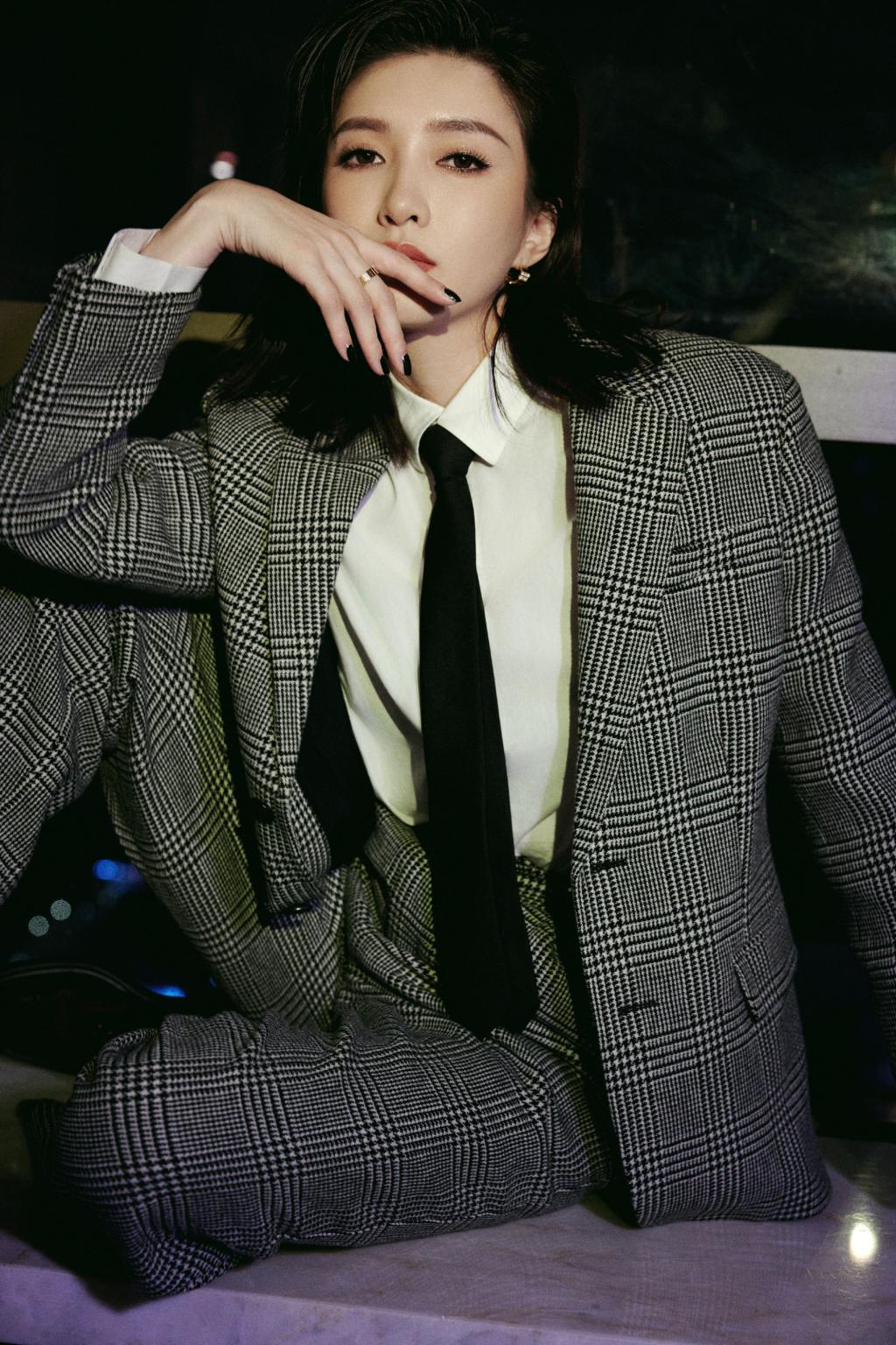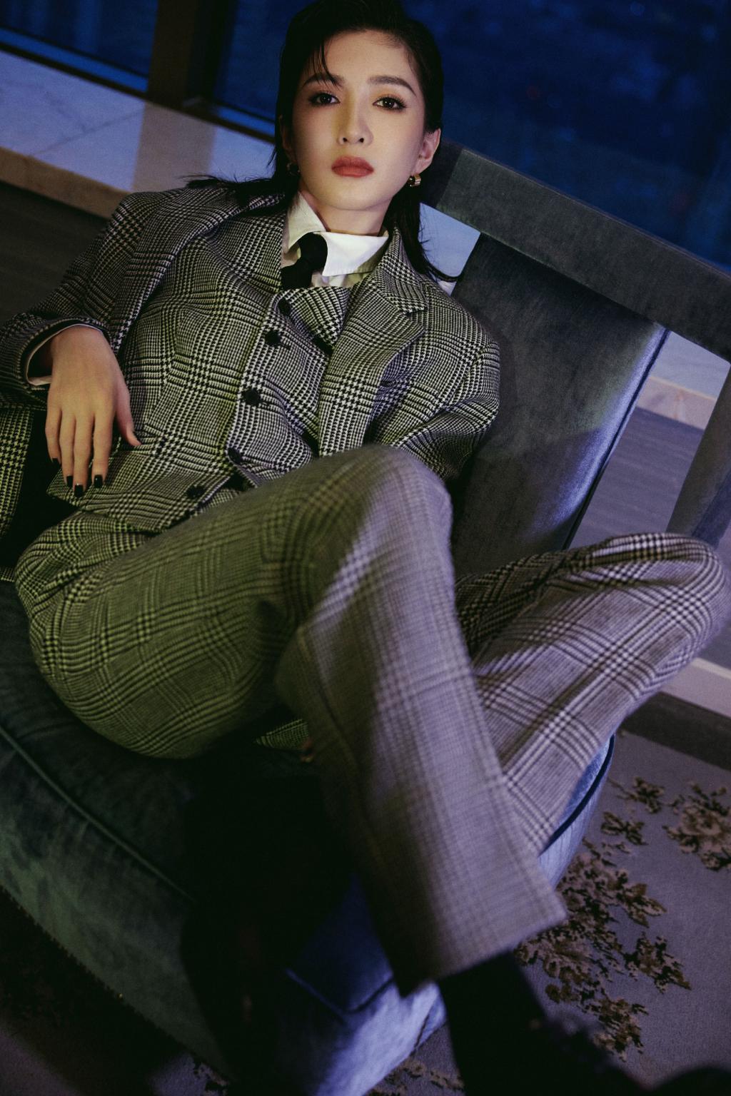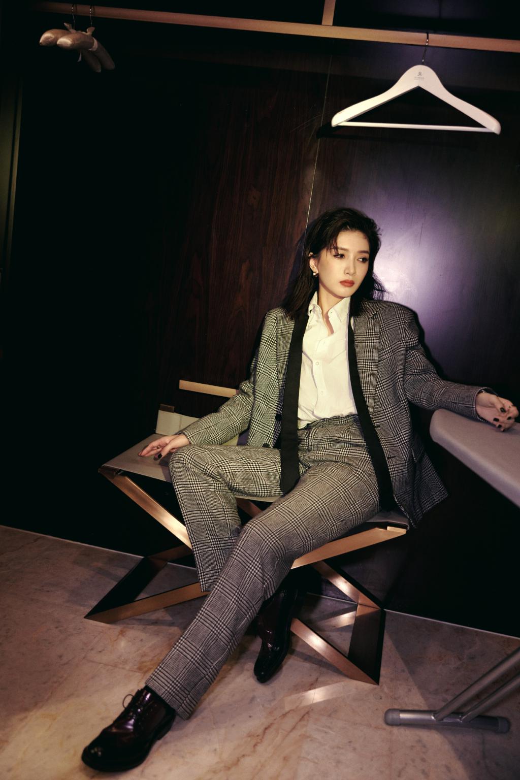 江疏影的一组美照曝光,她身穿千鸟格灰色西服套装帅气满分,半扎长发妆容精致干练,抹红唇又飒又美。