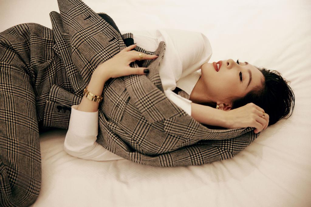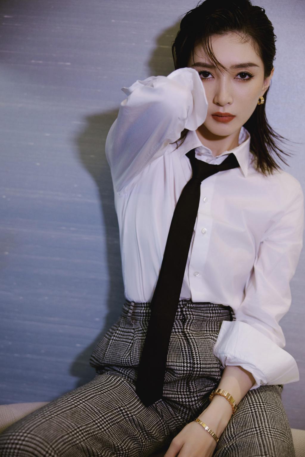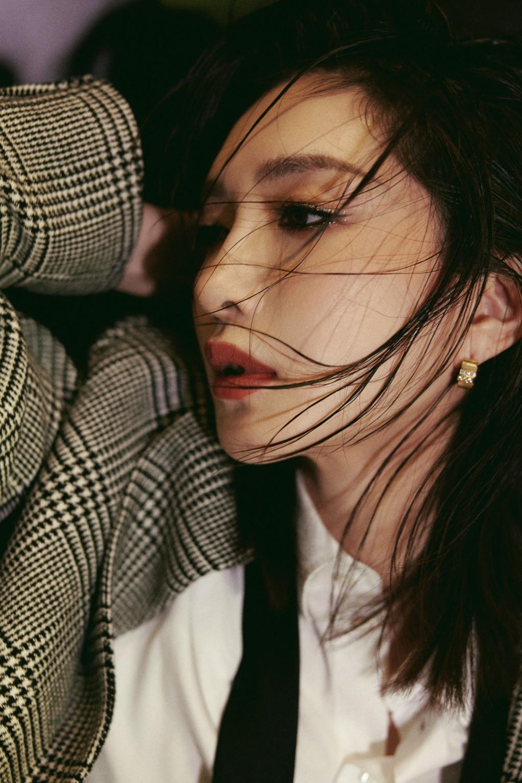 江疏影的一组美照曝光,她身穿千鸟格灰色西服套装帅气满分,半扎长发妆容精致干练,抹红唇又飒又美。