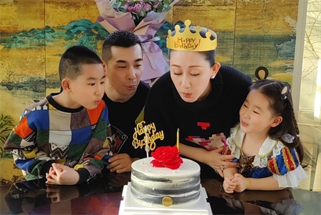 随后,一家人一起吹灭蜡烛,整个过程充满了欢声笑语,温馨而又有爱。