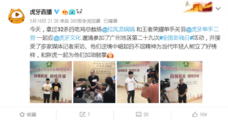 提到吃鸡主播,很多人可能都能想到韦神,毕竟是职业选手,人气相当高,不过在虎牙也有一位特殊的吃鸡主播,人气不比韦神低,也和韦神一样,都是从LOL转型而来,那就是拉风龙,曾经的国服第一人马。更恐怖的是拉风龙还是一位残疾人,只有三根手指,主播生涯相当励志。最近拉风龙应虎牙文化的邀请参加了广州地区第二十九次全国助残日活动,在现场引起了很多热议。