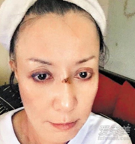 台湾女星罗霈颖隆鼻后,皮肤感染假体破损。